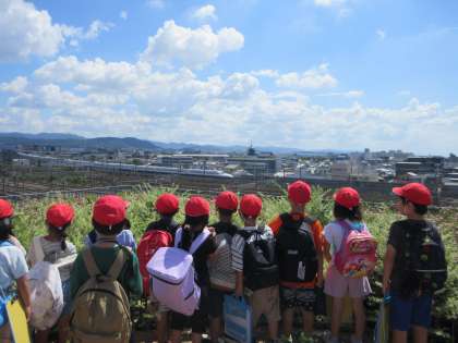 新幹線と電車が2台通り過ぎました。「追いかけっこしてるみたい」というつぶやきが聞こえてきました。