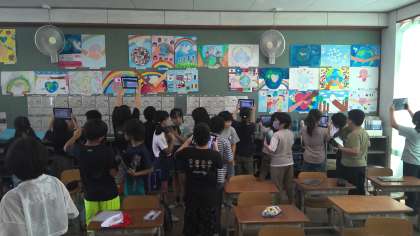 自分のクラスだけでなく、他クラスの作品も鑑賞し、一番印象に残った絵をタブレットで撮影しました。