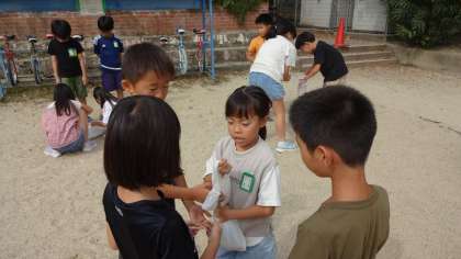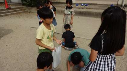 袋に砂を詰めて1キログラムを作りました。どの班が1キログラムに近いか勝負を行い、子どもたちは大変盛り上がっていました。はかりを正しく使うと同時に、量感も養っていけたらと考えています。