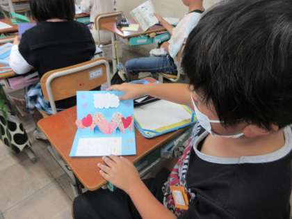 心を込めて作ったカード。おうちの人やお友達など、気持ちを伝えたい人に渡すことができたようです。