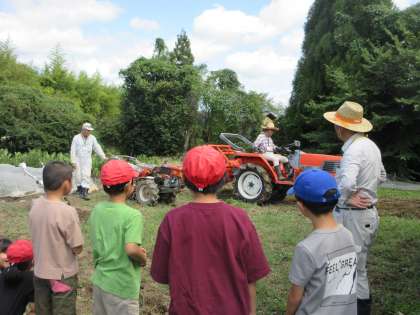 トラクターが動いたときは「すごい」「やりたい!」など子どもたちは興味津々でした。