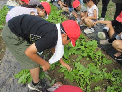 いよいよ間引きです。全部抜いてしまわないように、「元気なものはどれかな」「どれを抜こうかな」と、いっぱい迷って間引きするものを選びました。
