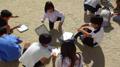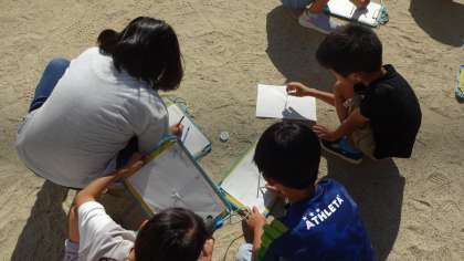 時間ごとにかげがどのように動くのか観察をしました。観察しながら「次はこっちに動くんちゃうかな」などと、予想しながら観察している姿が見られました。