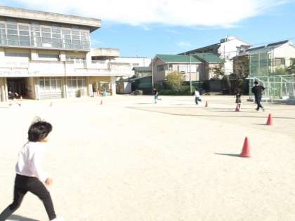 6くみは1時間目の「朝の会・6くみタイム」にランニングをしました。