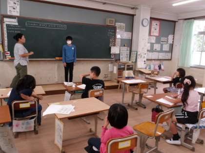 今回は5・6年生の委員会活動について調べました。調べるにあたって、6くみの5・6年生が自分たちの所属する委員会活動について、みんなに紹介をしてくれました。