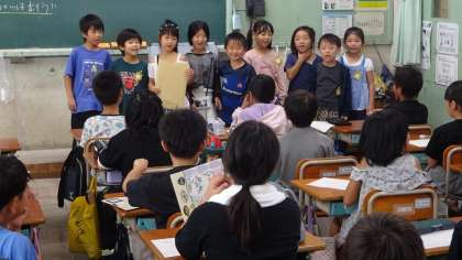 1年生から「おすすめの本を教えてほしい」と依頼が来ました。3年生の子どもたちは1年生のお願いを嬉しそうに聞いていました。今後、国語科の学習を通して、おすすめの本を紹介していこうと思います。