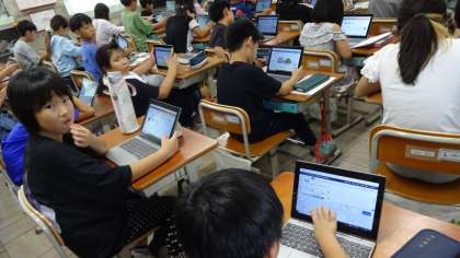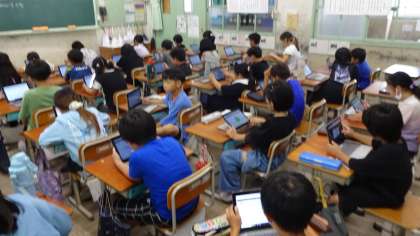 ローマ字を覚えた3年生。タイピングもかなり上達してきました。様々な学習の中でタブレットを活用していきます。