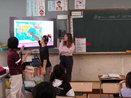 今日の3時間目は6くみでの英語活動でした。そして、今日は2学期から来られたALTのネーブ先生との1回目の学習です。