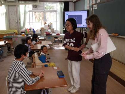 初めにみんなでネーブ先生の自己紹介を聞き、出身地のアイルランドという国やネーブ先生の好きなもの・興味のあることを知りました。