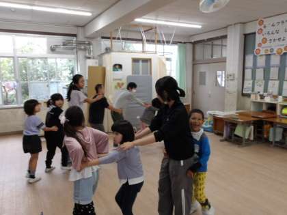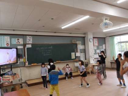 今日は生活科の時間に交流会にむけて、当日10校みんなで取り組むダンスやゲーム、バルーンの練習をしました。