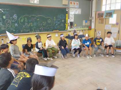 図画工作科「わっかでへんしん」では、工夫がいっぱいの飾りつけを考えていました。