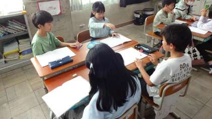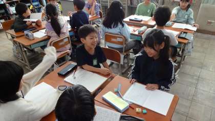 一人一人が1年生におすすめしたい本を決めました。今日は話し合いの動画を見て、良い点を交流しました。どの班もしっかりと話し合っていました。