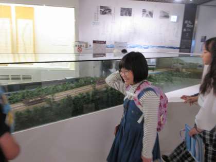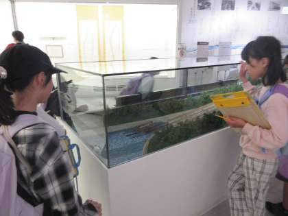 記念館に展示されているインクラインの模型をじっくり。どのような構造でどのように動いていたかとてもわかりやすいです。