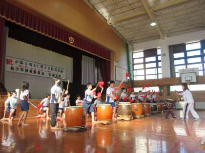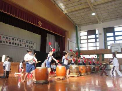太鼓の音で、地域の方々にも元気になってもらいたい、という気持ちで演奏しました。