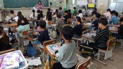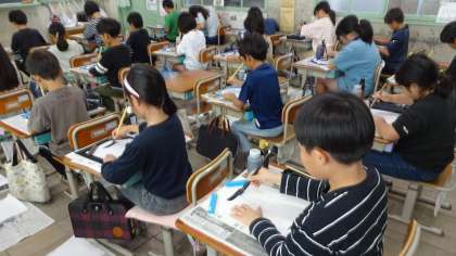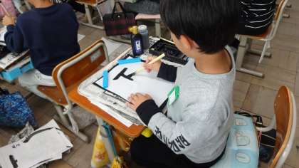 書写の学習で「正月」と書きました。今まで習ってきた「おれ」「はね」「とめ」などを意識しながら、丁寧に書き上げることができました。
