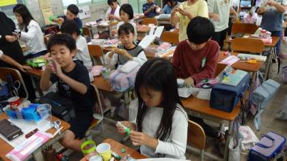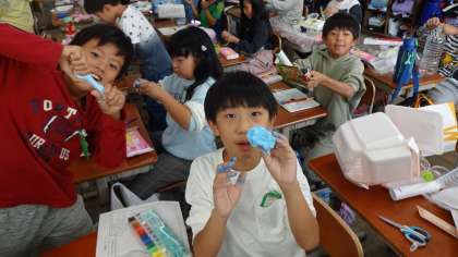 作りたいもののイメージができたので、今日は容器を組み合わせて、粘土を貼っていきました。とても楽しそうに活動をしていました。