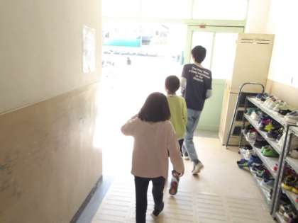 6くみでは、生活科の時間にチームに分かれて、校内の「秋」を探しに行きました。