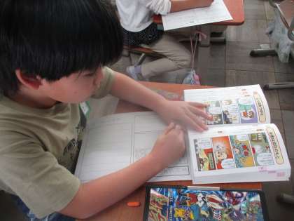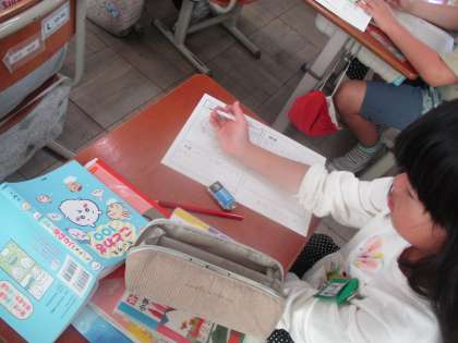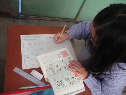 自分の気に入ったことわざや故事成語をカードに書いて、クラスで1冊の本にしようと、みんな一生懸命調べてカードに書いていました。