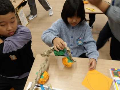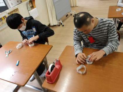 説明をきちんと聞いて、制作が始まりました。材料はトイレットペーパーの芯・広告紙・色画用紙です。