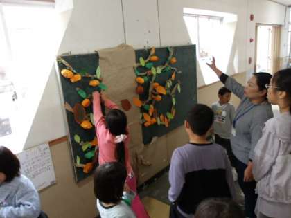 完成した柿の実をみんなで画用紙の木に実らせていきました。