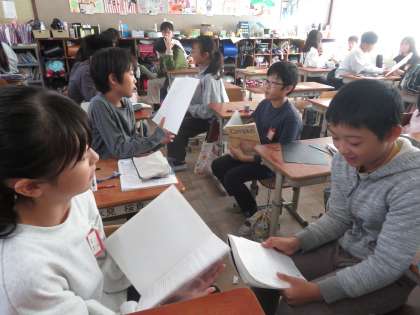 毎日の学習ではペアやグループで話し合いをしています。社会の学習では、資料を読んで、人々は何を願っていたのかを話し合いました。