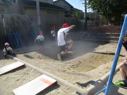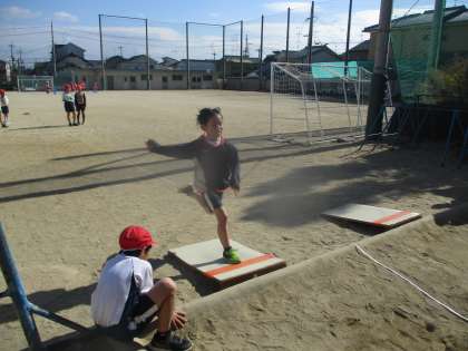 はばとびの学習を頑張っています。踏み切りも腕をしっかりと使って身体を高く上げることができてきました。