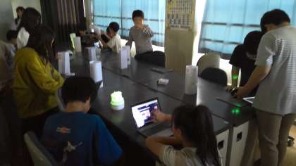 和紙に穴をあけたり、裏側にかざりをつけたりして素敵な明かりを作り出します。