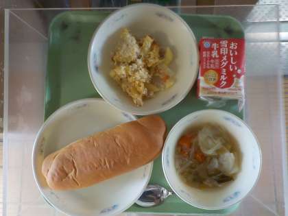 ペンネの豆乳グラタンは、ホワイトソースから給食調理員さんが手作りしています。