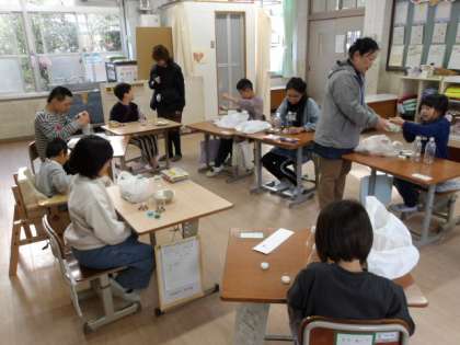 みんなでいっぱい体を動かした後は、図画工作科の学習です。