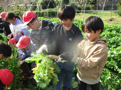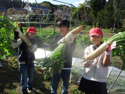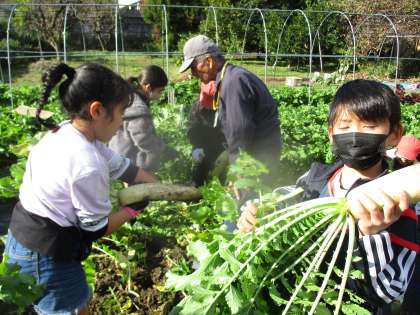 大根についた土は、葉っぱを使ってきれいにすることを教わりました。