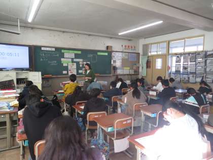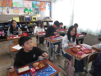 給食前には栄養教諭による授業もあり、中学生に必要な栄養などを教えてもらいました。中学校での昼食を決める際の参考にしてほしいと思います。