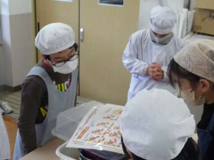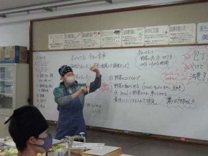 しっかりと担任の先生からの注意を聞き,材料の調理手順の確認をグループでしました。