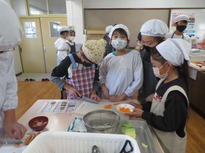 今週は調理実習を行いました。今回は豆腐と野菜のチャンプルーとスープを作りました。調理の仕方にもずいぶんと慣れ、グループで協力しながら手際よくおいしく作ることができました。