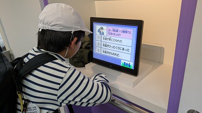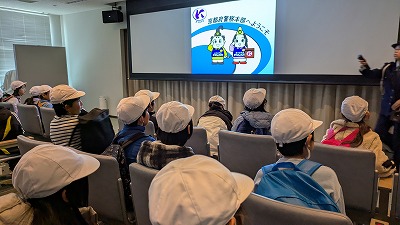 それぞれで警察に関するいろいろなクイズや体験などの後は、みんなで警察の仕事について映像を見て勉強しました。