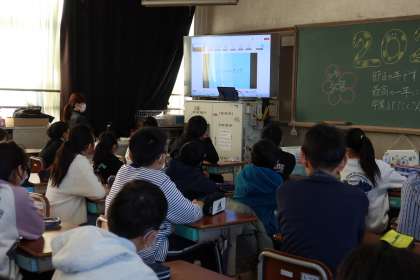 5年生のそれぞれの会社とこれから始まる事業のCM動画を、6年生も2年生もしっかり見てくれていました。