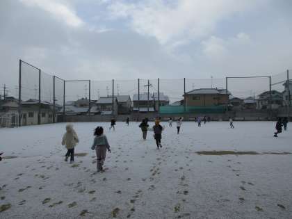 真っ白な運動場をみて