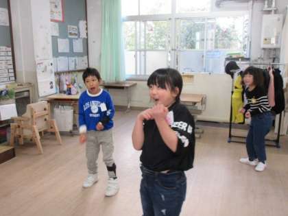こま回し、けん玉、福笑い、お手玉、羽根つきなどで楽しみました。