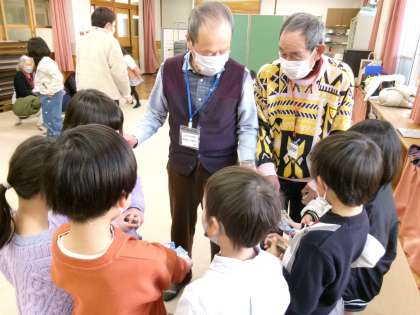 地域の方と一緒に元気にめんこ遊びをしました。