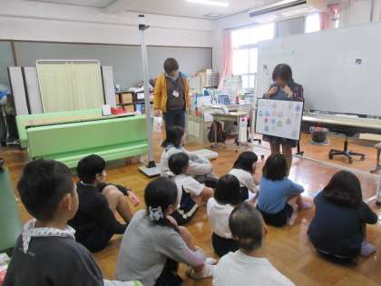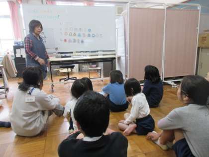 計測の前に重ね着のよさについて保健室の先生からお話を聞きました。