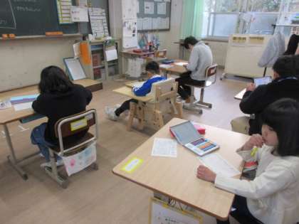 日頃の美味しい給食に感謝しながら、給食調理員さんにメッセージを書きました。