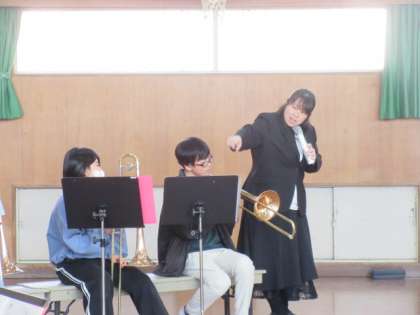 トロンボーンの紹介では、「スライド」を動かすと音が変わることに観客のみんなから歓声が上がっていました。