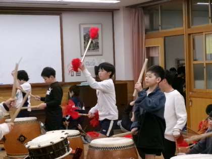 今日は、部活動和太鼓の最後の練習でした。「かがり火太鼓」と「まつり太鼓」の演目を練習しました。