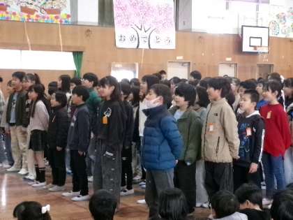 歌や言葉を一生懸命発表しました。6年生にありがとうの気持ちを伝えようとがんばりました。