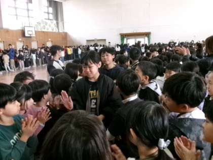 あらためて、全校児童で集まって楽しく過ごす集会のよさ、大切さを実感したひとときでした。とても心があたたまる素敵な会でした。顔を見る、伝え合う、触れあう、ってこんなに感動するんだ、と思いました。子どもたちの心にあたたかいものが残ったと思います。