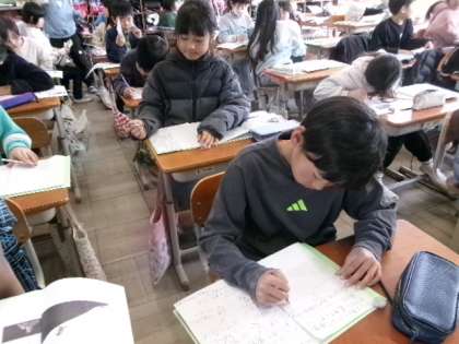 主人公について詳しく読み、考えたことを伝え合う学習をしています。個別最適な学びと協働的な学びを試みています。一人一人、自分の「問い」をもち、との問いの答えをみつけようと、ヒントとなる言葉や文に着目し、ワークシートに書きこんだり、自分なりにまとめたりしています。必要な時に友だちと交流し、自分の考えを広げたり、明らかにしたりしています。
