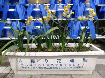 2年生が取り組んだ人権の花のスイセンがきれいに咲いています。春の訪れを感じさせます。花を見ると気持ちも美しく洗われるようです。