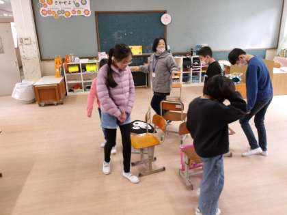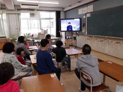 6くみでは、大好きな6年生と過ごす最後の日ということで、4時間目の生活科では、みんなで楽しくルールのある遊びを楽しんだり、先生や在校生からの「おめでとうムービー」を見たりしました。