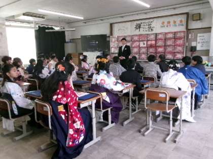 教室では、なつかしい動画を見たり、先生の最後の話を聞いたり、子どもたちからのプレゼントがあったり・・。それぞれの教室で最後の授業が行われました。