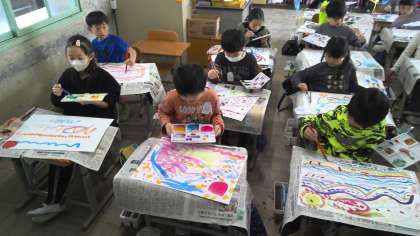 図画工作科「絵のぐ+水+ふで=いいかんじ!」