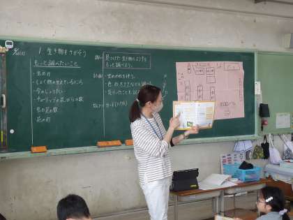 学校の中にあった,植物や生き物を調べた結果をみんなで出し合いました。